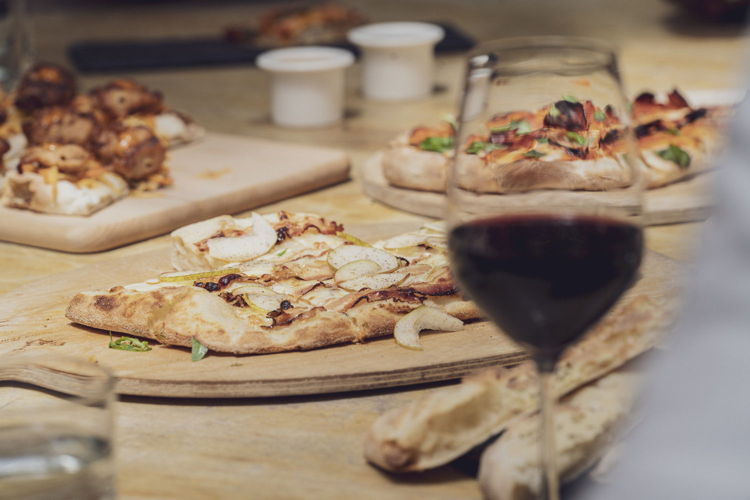 Tomatensauce, Mozzarella, Cherrytomaten, Rucola